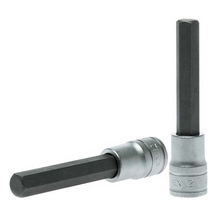 Long sockets for internal hex holes. For hand tightening. Chrome vanadium steel. Satin finish.