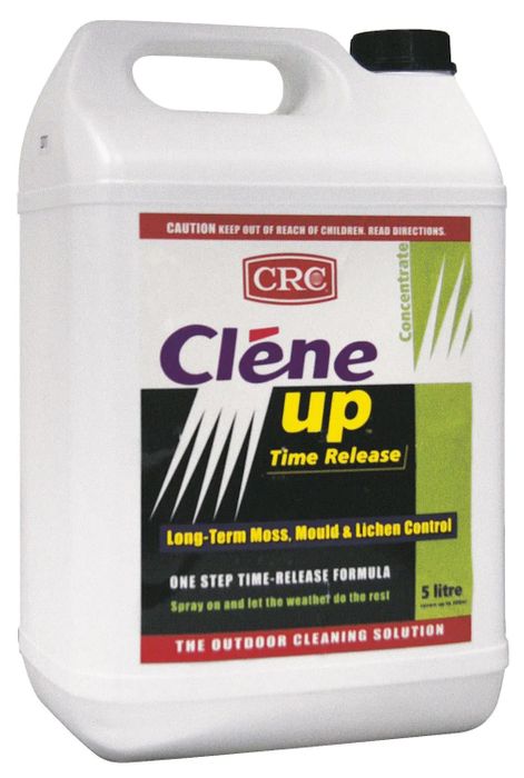 CRC Clene Up Time Release is a versatile outdoor cleaner that does all the hard work. It safely kills and removes algae, fungi, lichen, grime, mould, moss and mildew from all surfaces around the house and garden. It is residual on porous surfaces and does not require waterblasting or scrubbing – just spray it on and leave it.CRC Clene Up Time Release can be used as a pre-paint wash and condition on painted surfaces or as a roof wash, clean pathways, fences, wooden decks, roofs etc. It will not harm plants, lawns, animals when used as directed. It is residual on porous surfaces with no bleaching effects. Spray on and leave it, it doesn't get any easier!CRC Clene Up Time Release is a concentrated solution and should be mixed with water at a 1:5 ratio.